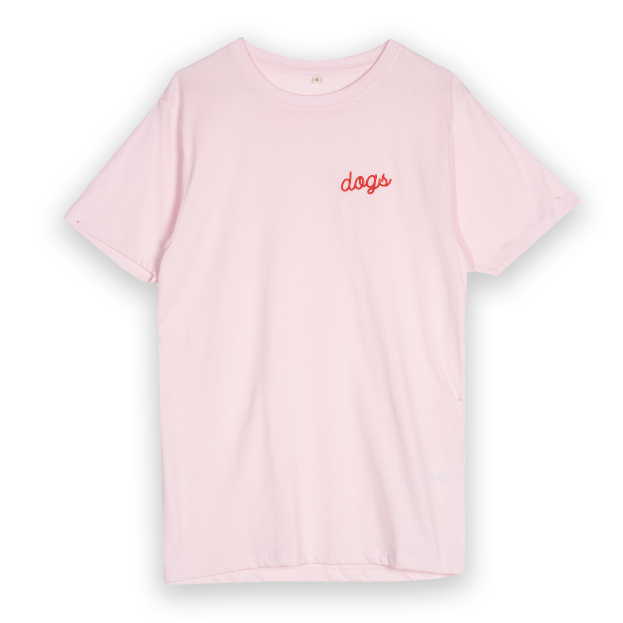 Light pink unisex t-shirt with red embroidery ''dogs''.